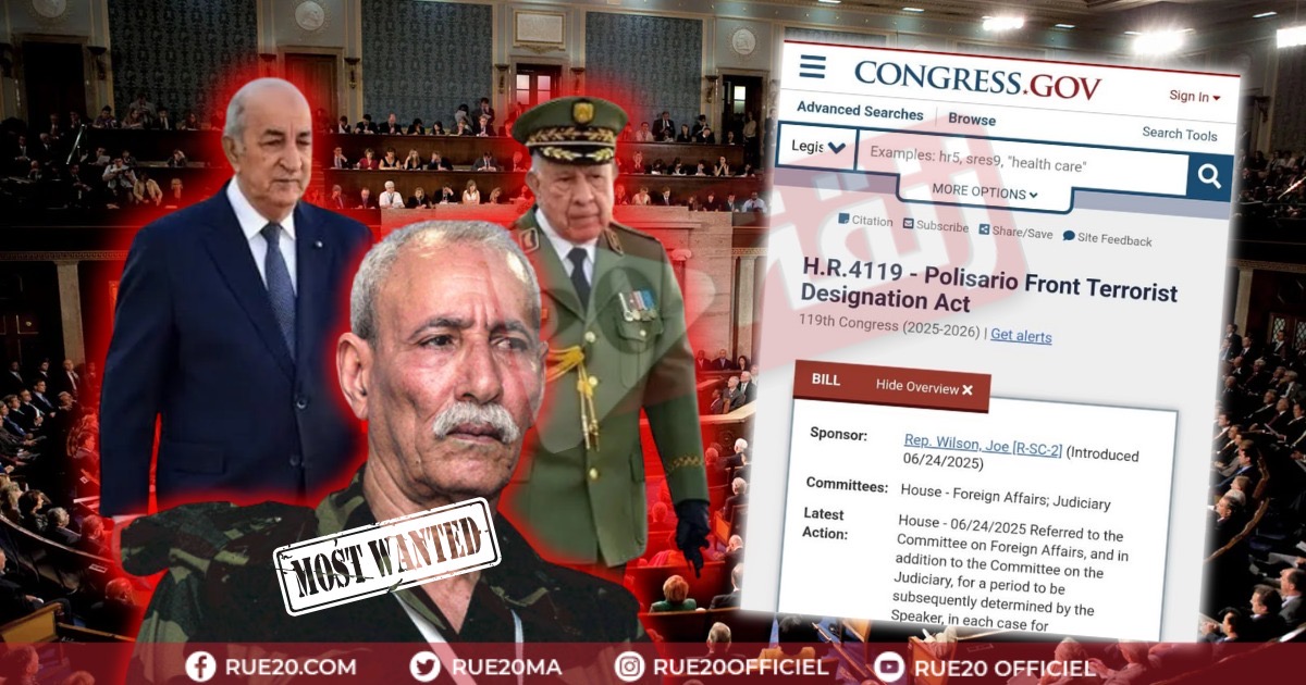 أدرج الموقع الرسمي للكونغرس الأميركي نص مشروع قانون جديد يحمل رقم H.R.4119، تقدم به النائب الجمهوري جو ويلسون، يدعو إلى تصنيف جبهة البوليساريو كتنظيم إرهابي أجنبي، في خطوة تشريعية لافتة قد تكون لها تداعيات على مسار النزاع في الصحراء.