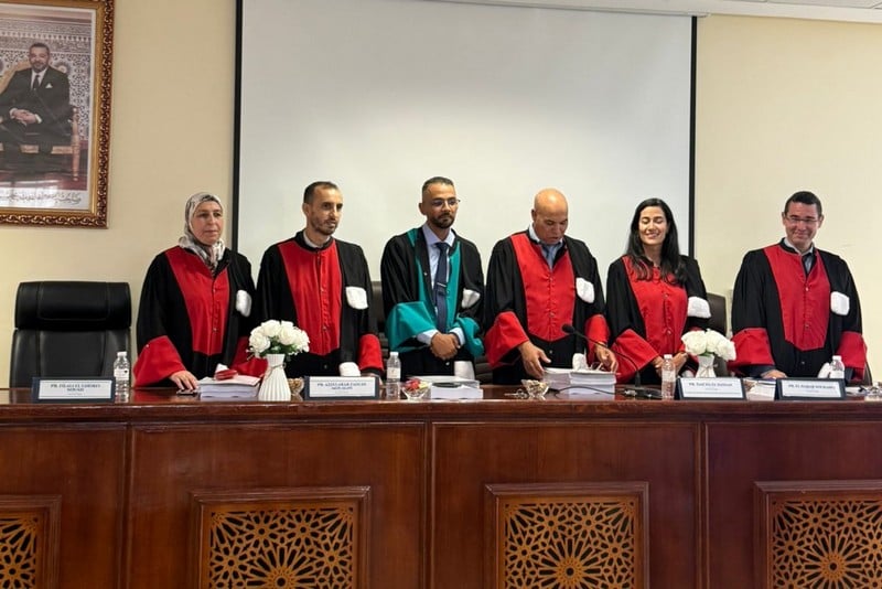 يشار إلى أن الطالب الباحث ناقش أطروحته أمام لجنة علمية ترأسها الدكتور الحسن تعشا، أستاذ التعليم العالي بكلية العلوم القانونية والاقتصادية والاجتماعية بطنجة-جامعة عبد المالك السعدي، وضمت في عضويتها كل من الدكتورة الحجاجي سكينة، أستاذة محاضرة مؤهلة بكلية العلوم القانونية والاقتصادية والاجتماعية بطنجة، والدكتور عز العرب الزودي الموغني، أستاذ محاضر مؤهل بالمعهد العالي للتجارة وإدارة المقاولات بالرباط، إلى جانب الدكتور هشام اشلحي، أستاذ التعليم العالي بالكلية متعددة التخصصات بالعرائش، والدكتورة سعاد الفيلالي الغرفي، أستاذة محاضرة مؤهلة بكلية العلوم والتقنيات بطنجة، بصفتهما مشرفين على الأطروحة.